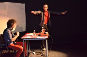 Además del trabajo práctico con estudiantes, Grzegorz Ziółkowski sumó dos conferencias en la Sala UPLA de la universidad. En la primera (lunes 3) denominada “La tradición del concepto de STUDIO en la práctica teatral europea” dio cuenta del desarrollo de los laboratorios de teatro que han concebido el hacer teatral como una exploración de la potencia del ser humano.