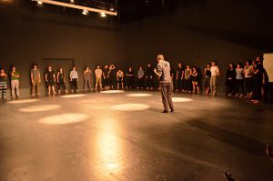 Fueron cinco intensas jornadas en que el director polaco, junto a su ayudante el actor Maciel Zakrzewski, trabajó con un grupo de jóvenes de las universidades de Playa Ancha y de Valparaíso y DUOC UC concentrado, principalmente, en conceptos como el ritmo, el flujo del cuerpo y el trabajo en parejas que luego cerraron (viernes 7) con una muestra titulada “Efímero Sonido”.