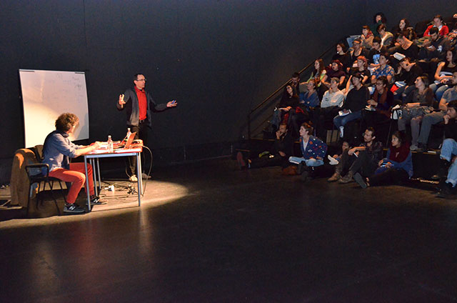 Además del trabajo práctico con estudiantes, Grzegorz Ziółkowski sumó dos conferencias en la Sala UPLA de la universidad. En la primera (lunes 3) denominada “La tradición del concepto de STUDIO en la práctica teatral europea” dio cuenta del desarrollo de los laboratorios de teatro que han concebido el hacer teatral como una exploración de la potencia del ser humano.