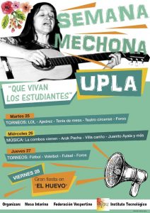 Con el fin de abarcar los diversos intereses de los estudiantes de la Universidad de Playa Ancha, la Mesa Interina, la Federación de Estudiantes Vespertinos (FEVEUPLA) y el Instituto Tecnológico de la UPLA de Valparaíso organizaron una serie de actividades y panoramas artísticos, culturales, reflexivos y deportivos por la Semana Mechona 2017, que se efectuará entre el lunes 24 y viernes 28 de abril.