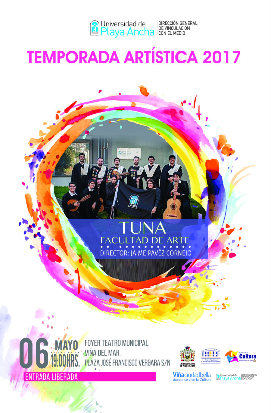 Como cada año, los elencos artísticos de la Universidad de Playa Ancha comenzarán su participación en diversos escenarios de la región. De esta forma, este sábado 6 de mayo, a las 19:00 horas, la Tuna de la Facultad de Arte se presentará en el Foyer de Teatro de Municipal de Viña del Mar, espacio que brinda una oportunidad a las agrupaciones de la UPLA para que sean parte de su cartelera anual.