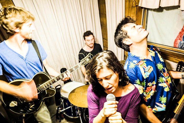Sobre el escenario se ve a una cantante, interpretada por la destacada actriz Claudia Cabezas y su banda de rock conformada por Victor Montero, Nicolás Zárate y Gonzalo Martínez.