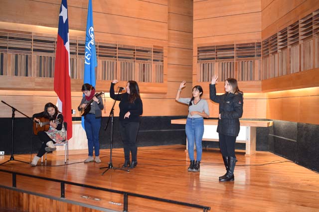 Un emotivo momento se vivió, además, cuando las estudiantes de primer año de la carrera de Educación Diferencial y carrera de Pedagogía en Educación Musical interpretaron «Gracias a la vida» de Violeta Parra, en lengua de señas.