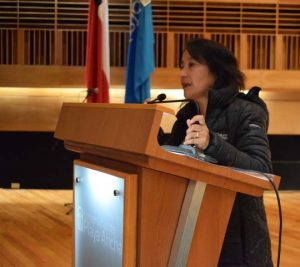 Durante la ceremonia, la funcionaria Loreto Bórquez, de Vicerrectoría de Desarrollo, interpretó canciones populares que fueron aplaudidas por los presentes.