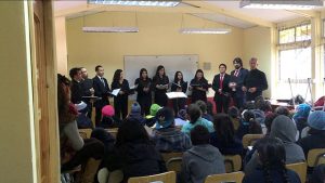 En el marco del proyecto “La creación coral chilena en homenaje a Violeta, músicos y poetas” financiado por la Dirección de Asuntos Culturales (DIRAC) del Ministerio de Relaciones Exteriores del Gobierno de Chile, el Conjunto de Madrigalistas de la Universidad de Playa Ancha realizó su primera presentación artística en la escuela rural “Delfina Alarcón” de la localidad de Colliguay, comuna de Quilpué.