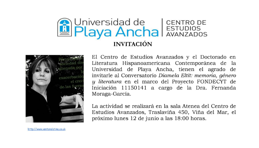 Más información en: Diamela Eltit dará vida a un conversatorio en el Centro de Estudios Avanzados.