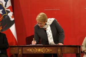 En una ceremonia en el Palacio La Moneda, la presidenta Bachelet, junto a la ministra de Educación, Adriana Delpiano; el ministro Secretario General de la Presidencia, Nicolás Eyzaguirre; y el ministro de Hacienda, Rodrigo Valdés, firmó hoy el proyecto de ley especial para fortalecer a las universidades del Estado, ratificando lo dicho ayer, durante la Cuenta Pública.