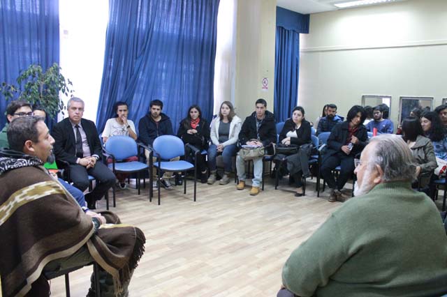 Presentó al expositor, el director del Departamento de Lingüística, Dr. Daniel Lagos, quien subrayó que esta presentación, se realiza en el marco del proyecto “Trepan kimün mew”: (Despertar en el saber), que dirige la poeta y educadora tradicional Libertad Manque Salinas.