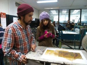 Un importante encuentro de integración transdisciplinario se lleva a cabo en el taller de Grabado de la Facultad de Arte de la UPLA, espacio donde se reunirán periódicamente estudiantes de segundo año de las carreras de Licenciatura en Arte (Facultad de Arte) y Pedagogía en Castellano (Facultad de Humanidades) en torno al proyecto “Tocar el aprendizaje” inserto en los Talleres Integrados de Formación Profesional 3 (TIFP) que coordina el Departamento de Prácticas de la universidad.