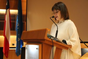 Marcela Sepúlveda Riveros, coordinadora de la carrera de Pedagogía Básica modalidad diurna, resaltó en su discurso que en esta última etapa de su formación reforzó el compromiso con los niños y niñas en las aulas, como también que el arduo camino de su formación no fue en vano.