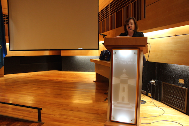 Giselle Escarpentier Feliú, coordinadora de la carrera de Pedagogía Básica modalidad vespertina, destacó a las promociones 2012 y 2013 pues representan a las primeras generaciones que ingresaron con puntaje PSU que obtendrán un título con mención y pioneros en la innovación curricular. “Ustedes son un grupo humano que no será fácil de olvidar. Deben sentirse orgullosos de haber tomado la decisión correcta. Espero que en esta casa de estudio les hayamos enseñado a volar, a soñar, a vivir y que nuestro sello perdure por siempre. Esperamos haberle dado realce al proceso de formación de los profesores y que ayuden a cambiar el mundo como profesores de Educación Básica”.
