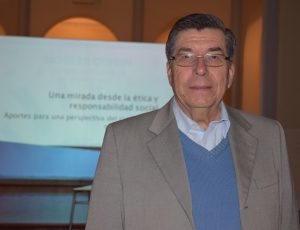 El Rbdo. Roberto Pinto Urzúa, ingeniero civil industrial (PUCV) con experiencia en empresas de servicio eléctrico, expuso sobre “Ética y Responsabilidad Social”, en el que aportó una mirada desde la Iglesia, a partir de la “Laudato si”, segunda encíclica del papa Francisco, referida al medio ambiente y el desarrollo sostenible.