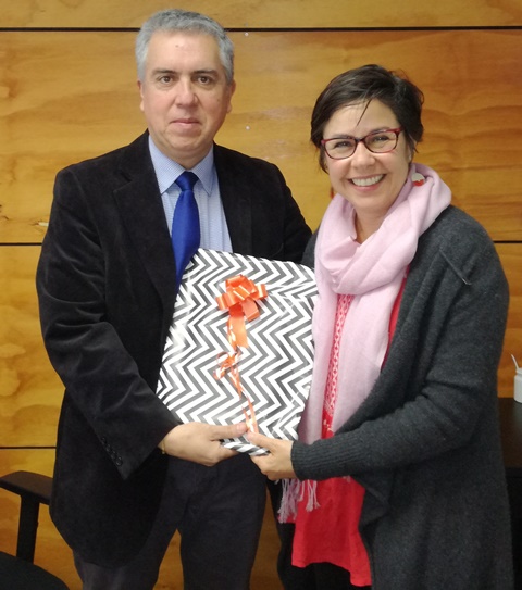 El director general de Relaciones Internacionales de la UPLA, José Manuel Olivares, y la secretaria Ejecutiva de la unidad, Paulina Martínez, junto con recibirlas efectuaron una completa presentación de la institución.
