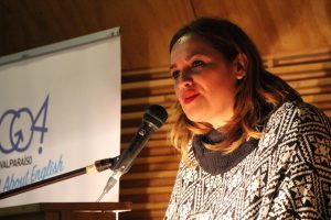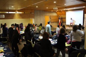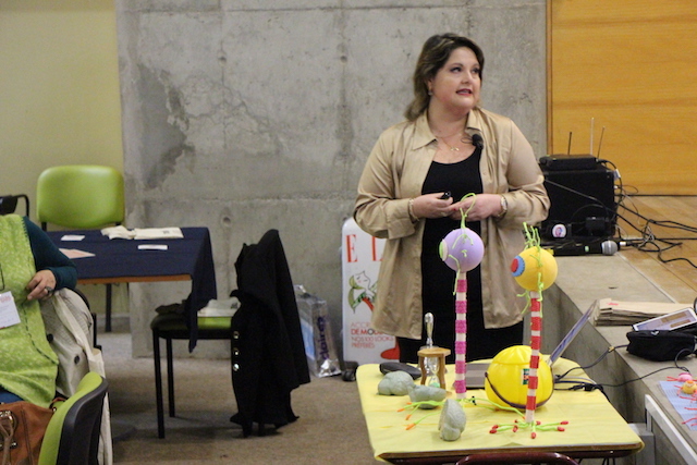 Luego la profesora Tamara Cortéz de la Universidad Católica Silva Henríquez, expuso sobre la necesidad de trabajar la expresión oral tanto en el idioma materno como el segundo idioma, y la necesidad de explicar y mostrar la oralidad del lenguaje.