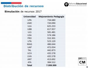 El segundo lugar fue para la Universidad Metropolitana de Ciencias de la Educación (UMCE), que este año recibirá 720 millones de pesos por este concepto.