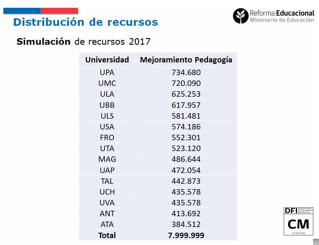 Este reconocimiento llegó en el marco del análisis presupuestario para la línea de fortalecimiento de pedagogías, como parte del Convenio Marco 2017 suscrito con las universidades del Estado. Se trata de un programa de diez años, que cuenta con financiamiento del Banco Mundial.