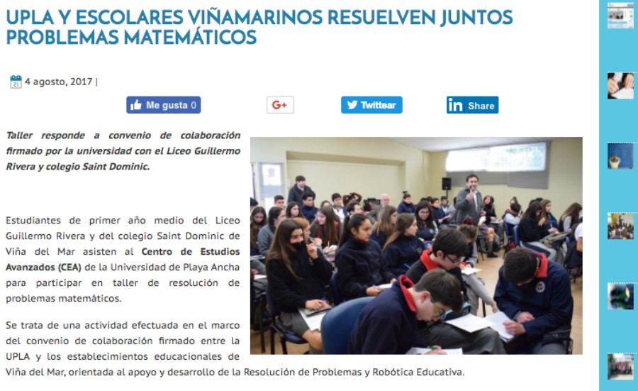 UPLA y escolares viñamarinos resuelven juntos problemas matemáticos Fuente: EduGlobal, publicado el 4 de agosto de 2017 Comparte tweet