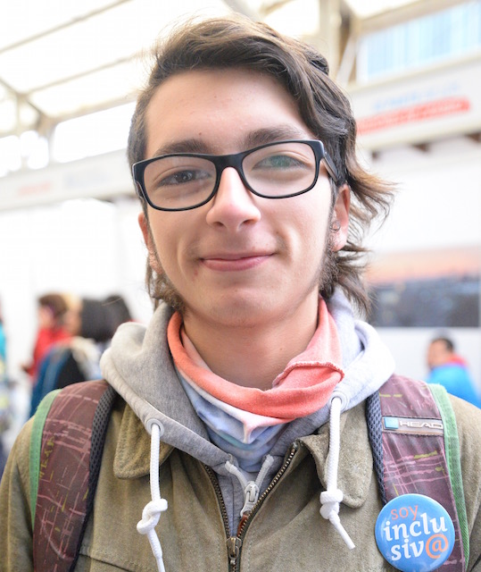 Óscar Llanos Maluenda, 4º Año Medio, Liceo María Luisa Bombal: «Considero que ésta es una muy buena oportunidad para precisar qué es lo que quiero hacer, porque puedo conocer todas las carreras que me podrían interesar, aun cuando tengo preferencia por la Facultad de Arte, porque quiero estudiar teatro».
