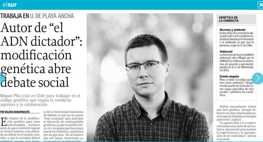 Autor de El ADN Dictador: modificación genética abre debate social Fuente: El Sur de Concepción, página 16, publicado el 4 de septiembre de 2017. Comparte tweet