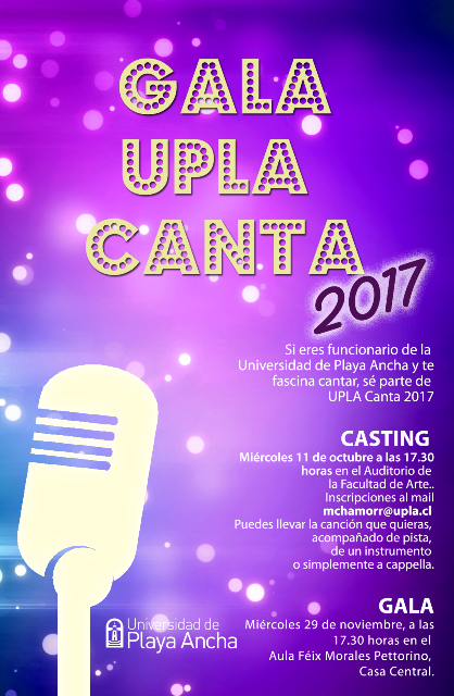 Por segundo año consecutivo, se realizará la Gala UPLA Canta, una instancia para que los funcionarios de todos los estamentos de la Universidad de Playa Ancha tengan la oportunidad de vivir la música, cantando sobre un escenario, acompañados por músicos profesionales y sintiéndose artistas por un día.