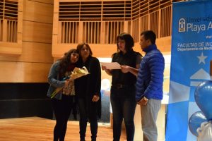 La directora del Departamento de Medio Ambiente de la Facultad de Ingeniería, Eva Soto, entregó a la familia Rojas Cortés un diploma que destacó las cualidades del estudiante.