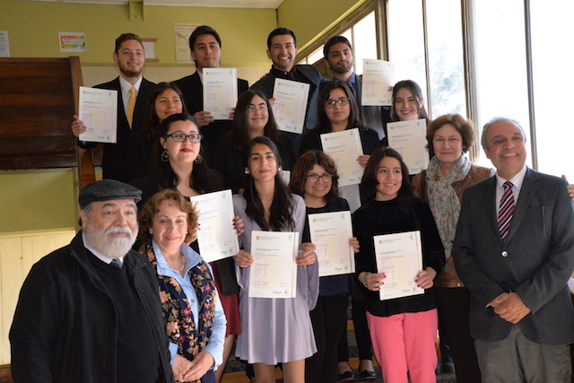 El reconocimiento recayó este año en: Cristian Andrade Gómez, Lía Cortés Berríos, Carla Chacana Figueroa, Camila de la Fuente, Rodrigo Figueroa Órdenes, Javiera Iturriaga González, Loreto Gil Díaz, Esperanza Montes Cisternas, Jonathan Oyarzún Guzmán, Katerina Poblete T., Cristóbal Ramos Pérez y Macarena Vera Contador.