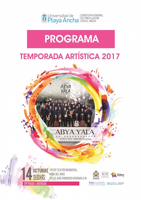 Este sábado 14 de octubre, a las 19:00 horas, se vivirá un concierto más de la Temporada Artística en el Teatro Municipal de Viña del Mar. En la ocasión, se presentará el Ensamble Latinoamericano Abya Yala de la Universidad de Playa Ancha, elenco dirigido por el académico de la Facultad de Arte, Fabián Durán.