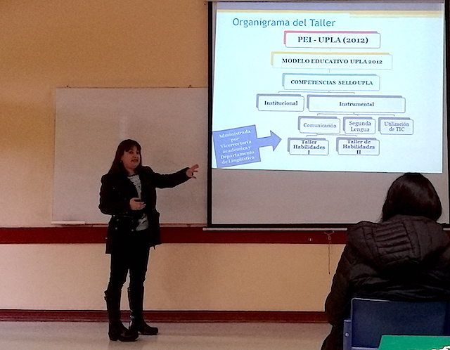 -“El uso del portafolio como generador de oportunidades para la evaluación de la escritura académica y la autoregulación”, de la doctora Yudi Herrera, académica del programa de Univelación, quien además se presentó junto con la académica de la carrera de Bibliotecología, magíster © Cecilia Jaña. “Expectativas docentes y representaciones de los estudiantes de la carrera de Bibliotecología en torno a las tareas de escritura-lectura académicas”.