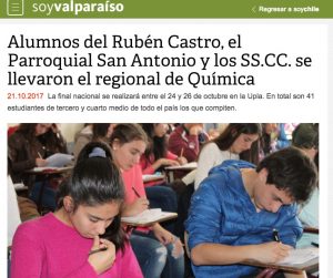 Diego Jofré Herrera, Juan Severín Díaz y Lucas Cárcamo serán los representantes de la Región de Valparaíso en la final nacional de las Olimpiadas de Química 2017.