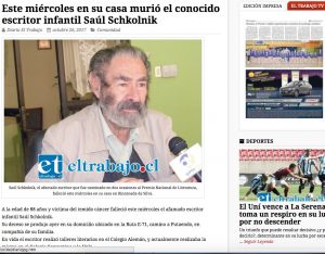 A la edad de 88 años y víctima del temido cáncer falleció este miércoles el afamado escritor infantil Saúl Schkolnik.
