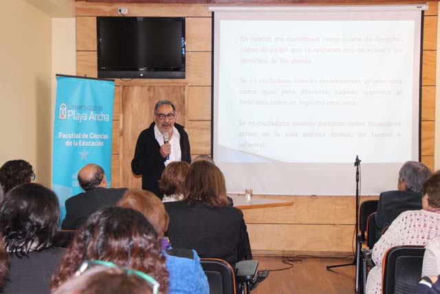 En una sencilla ceremonia, los profesores tuvieron la oportunidad de escuchar al Dr. Magendzo y su propuesta para la formación ciudadana y la educación en derechos humanos desde una perspectiva controversial: “En términos generales , hay cierto consenso en que un tema o tópico es controversial cuando puede ser percibido y sostenido desde distintos puntos de vista, basados en argumentos no contrarios a la razón”, explicó.