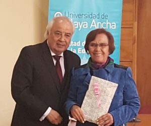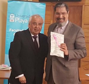 Terminada la exposición del Dr. Magendzo, el decano de la Facultad de Ciencias de la Educación, Luis Alberto Díaz, le entregó un reconocimiento por su destacada trayectoria académica e investigativa.