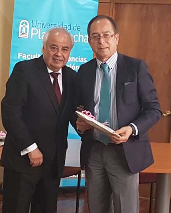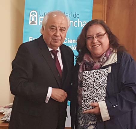 Terminada la exposición del Dr. Magendzo, el decano de la Facultad de Ciencias de la Educación, Luis Alberto Díaz, le entregó un reconocimiento por su destacada trayectoria académica e investigativa.