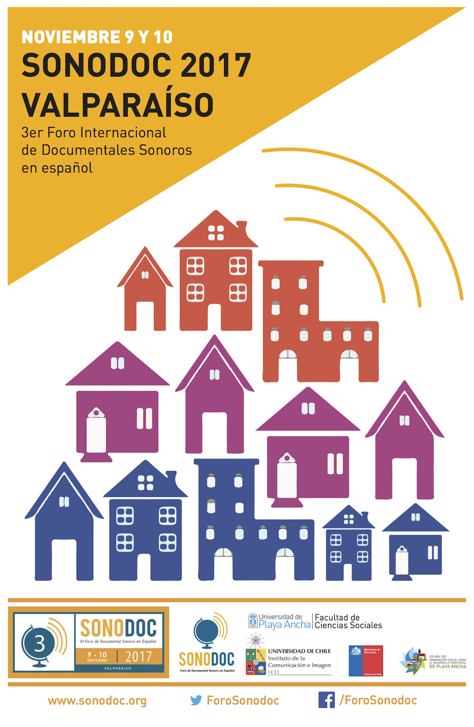 SONODOC es una organización que nace en 2014 al calor de la Bienal Internacional de Radio de México. Allí, un grupo de seis productores y productoras decidieron asociarse para fortalecer el uso del documental sonoro y pensar en una radio latinoamericana más atractiva, con la intención de fomentar la reflexión, la capacitación, la investigación y la producción en torno al género. El primer foro fue en Bogotá, Colombia, en 2015, y el segundo en Ocotlán, Jalisco, México, en 2016. Este foro internacional desembarca en Santiago de Chile y Valparaíso y pretende ser una oportunidad para periodistas, artistas y radialistas de Chile.