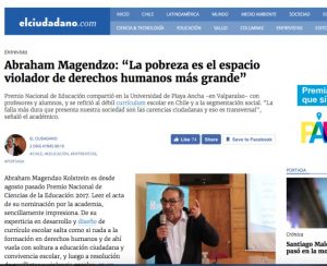 Abraham Magendzo Kolstrein es desde agosto pasado Premio Nacional de Ciencias de la Educación 2017. Leer el acta de su nominación por la academia, sencillamente impresiona. De su experticia en desarrollo y diseño de currículo escolar salta como si nada a la formación en derechos humanos y de ahí vuela con soltura a educación ciudadana y convivencia escolar, y luego a resolución de conflictos y violencia escolar, en un variopinto abanico temático. No es de extrañar, entonces, que su nominación haya sido con el voto unánime del jurado, que lo reconoció como “un innovador en aspectos clave del debate educativo actual”.