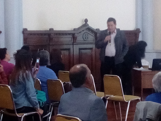 Geógrafo y docente Gastón Gaete, entregando resultados preliminares de la encuesta a inmigrantes.