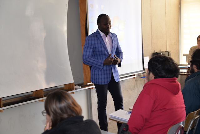 Dariste Jourdin, sociólogo haitiano, junto a estudiantes de la cátedra de Geografía Humana de Chile.