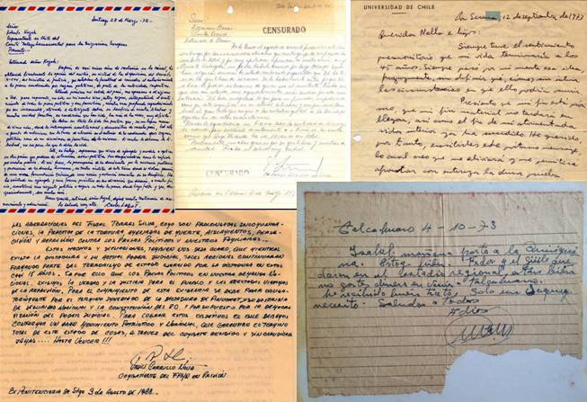 En otras cartas destacan: el último manuscrito de Víctor Jara escrito en el Estadio Chile y sacado clandestinamente del Estadio Nacional (octubre 1974); carta de Carlos Berger, a su madre Dora Guralnik, escrita un par de semanas antes de su fusilamiento en Calama, (23 septiembre 1973); carta abierta que hizo circular la Agrupación de Familiares de Ejecutados Políticos, AFEP ( 3 de junio de 1988) a la muerte trágica de la señora Dora Guralnik; carta del dirigente Miguel Enríquez al cardenal Raúl Silva Henríquez (abril de 1974); carta de Muriel Dockendorff ( detenida desaparecida) a Sandra Machuca en la Villa Grimaldi (octubre de 1974); carta de Juan Bautista Van Schouwen (detenido desaparecido) enviada a su madre Carlota Vasey; carta de Rody Robotham, desde la cárcel de Antofagasta, a su amigo Francisco Sepúlveda que estudiaba en Suiza (1974); carta del dirigente detenido desaparecido Exequiel Ponce, a cargo de la directiva del partido Socialista en la clandestindad a su esposa Margarita y a su hija Tania (mayo 1975); carta y mensajes de apoyo de Familiares de Detenidos Desaparecidos, AFDD, con ocasión de su primera huelga en la CEPAL ( junio 1977); cartas de Laura Allende al Papa Juan Pablo II, Fidel Castro y a Gabriel García Márquez (1981); carta de la señora Aida Bugueño a Juanita y a sus hijos del grupo Illapu cuando fueron impedidos de ingresar al país (1981); cartas del doctor Manuel Almeyda a su esposa Elsa Parada ( 1984) y a obispo Carlos Camus (1987); carta clandestina enviada por el dirigente del MDP, Jaime Insunza a su hijo Javier con motivo de su primer cumpleaños (1984); carta de Verónica De Negri, madre de Rodrigo Rojas, quemado vivo, al Comité Pro Retorno (1986); carta de Carmen Gloria Quintana enviada de Canadá, tras su partida de Chile (1987); cartas de los hermanos Rafael, Eduardo y Pablo Vergara Toledo a sus padres (1984 – 1987); carta de la ex senadora comunista Julieta Campusano, desde su relegación en el norte (1987); carta enterrada en una botella al cierre del campamento de Chacabuco (1974); carta soñada que se escribió a sí misma la señora Ana González de Recabarren como si fuera su marido Manuel Recabarren, secuestrado al salir de su casa en búsqueda de información que diera luces del paradero de sus hijos Manuel, Luis Emilio y su esposa, Nalvia Mena, embarazada de tres meses; todos ellos hechos desaparecer hasta los días de hoy y una serie dedicada exclusivamente al exilio.