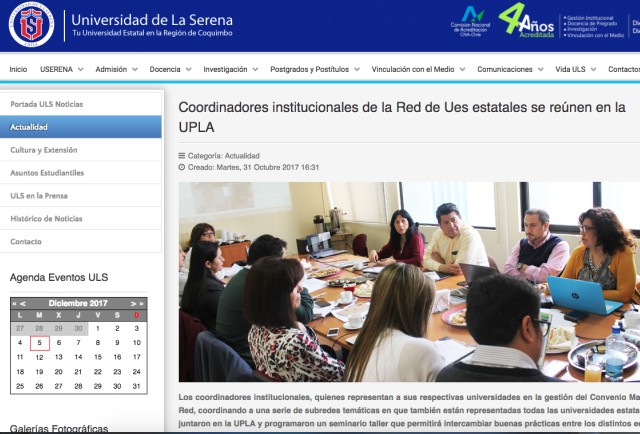 El acuerdo se tomó durante la última reunión de los coordinadores institucionales de la Red, que se efectuó en la Universidad de Playa Ancha (UPLA). Ellos representan a sus respectivas universidades en la gestión del Convenio Marco en Red, coordinando a una serie de subredes temáticas en que también están representadas todas las universidades estatales.
