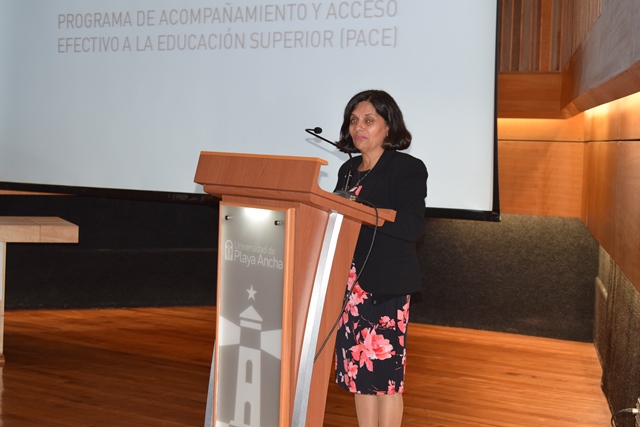 Afirmó constatar con satisfacción el incremento de la cobertura de estudiantes atendidos por el PACE, distribuidos en 14 comunas de la región, así como la recepción y acompañamiento en 2017 de la primera cohorte de 56 estudiantes provenientes del programa, para cursar carreras profesionales (44 en campus Valparaíso y 12 en campus San Felipe).