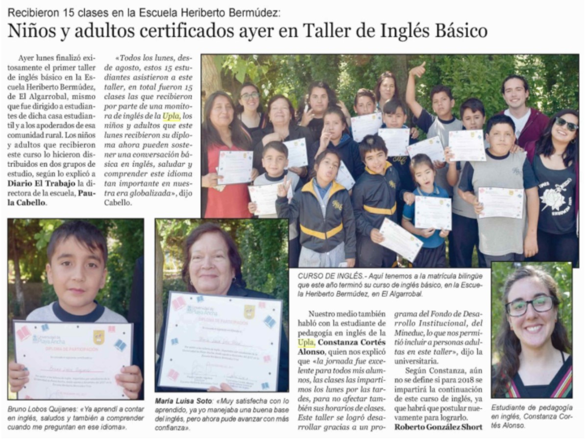 Niños y adultos certificados ayer en Taller de Inglés Básico