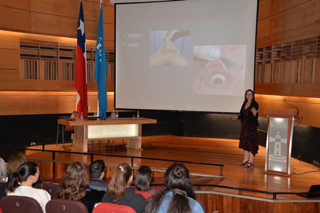 La actividad organizada por la carrera de Fonoaudiología fue inaugurada por la decana de la Facultad de Ciencias de la Salud, Mirta Crovetto, y contó con exposiciones referidas a: “Consideraciones desde el cuidado de Enfermería”, por parte de la enfermera de la Universidad de Valparaíso, Francisca González; “Síndrome Elhers Danlos. Un abordaje kinésico”, a cargo del kinesiólogo Norman Marfull; y “Alteraciones de la comunicación y deglución en hiperlaxitud, reflexiones desde un caso”, abordado por el fonoaudiólogo Marcelo Sandoval.