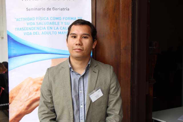 El kinesiólogo Marco Morales, ergónomo de la Mutual de Seguridad y titulado en nuestra casa de estudio, expuso sobre “Efecto del ejercicio físico sobre el aprendizaje motor en un modelo animal de enfermedad de Parkinson inducido por 6-Hidroxidopamina”. Lo anterior, debido a su experiencia mientras era estudiante en el laboratorio de neurociencias, donde pudo investigar , específicamente, los efectos que tiene el ejercicio físico en distintas poblaciones y patologías, abarcando especialmente el efecto que tiene sobre el envejecimiento y las enfermedades neurodegenerativas como el Alzheimer y el Parkinson.