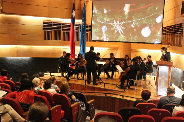 En una presentación rebosante de alegría se transformó el Concierto de Navidad realizado por la Orquesta de Cámara de la Universidad de Playa Ancha, en el aula Dr. Félix Morales Pettorino de la institución.