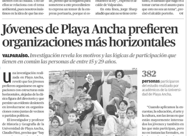 Una investigación realizada en Playa Ancha, reveló que los jóvenes prefieren organizarse en agrupaciones con estructuras más horizontales, alejadas de la clásica figura del directorio y que persiste un evidente desinterés en involucrarse en organizaciones como juntas de vecinos o partidos políticos.