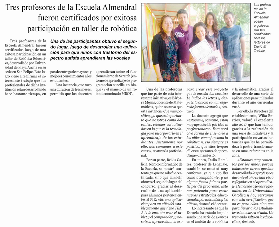 Fuente: Diario El Trabajo de San Felipe, página 12, publicado el 28 de diciembre de 2017.