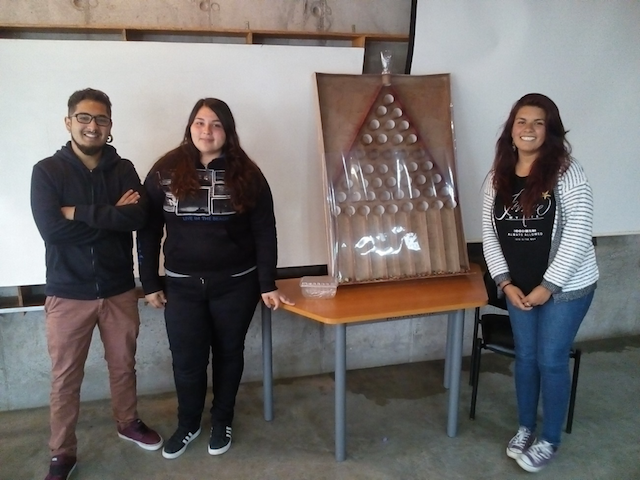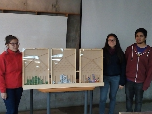 Destacó, además, que en la elaboración de la máquina de Galton es posible visualizar la importancia del tamaño muestral en el supuesto de normalidad, piedra angular de la inferencia estadística. Sin embargo –precisó-, los alumnos realizaron variaciones de esta máquina, considerando cuatro aspectos basales: Utilización de elementos cotidianos, cuyas formas son aproximadamente regulares, como lo es el uso de porotos de soya.