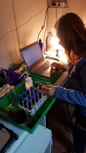 El investigador comentó que desde el arribo a Isla Rey Jorge, “afortunadamente nos han tocado buenas condiciones climáticas, por lo que pudimos hacer dos buenos días de terreno y estamos preparando todo en el laboratorio para los experimentos de exposición a incrementos de temperatura”.