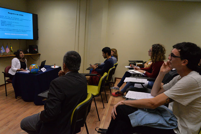 Posteriormente, la secretaria Ejecutiva de la Dirección General de Relaciones Internacionales, Paulina Martínez Moreno, les dio a conocer los aspectos administrativos de su estada en la universidad desde la tramitación de la visa por estudios hasta la inscripción de asignaturas.