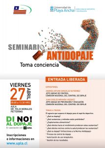 Con el objetivo de que los estudiantes-deportistas a través de la formación y educación se desarrollen en un ámbito libre de sustancias prohibidas, no afectando su salud y los principios éticos que implica la práctica deportiva, la Dirección de Deportes y Recreación de la Universidad de Playa Ancha y la Comisión Nacional de Control de Dopaje (CNCD), invitan a la comunidad al Seminario Antidopaje “Toma Conciencia”.